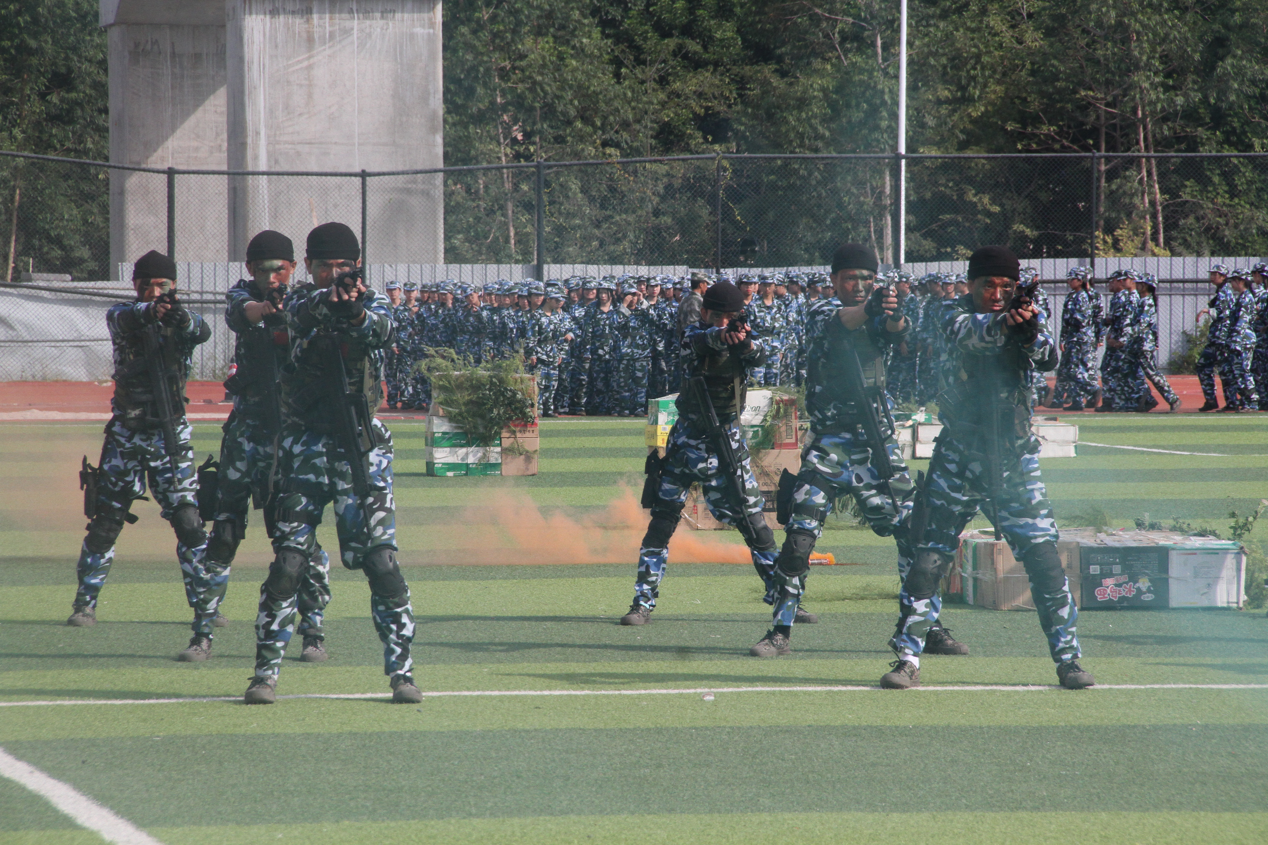 反恐战术、匕首操、刺杀操刚柔并济,虎虎生威,演绎着青春的激情。综合格斗、短棍术、擒敌拳豪情万丈、精彩纷呈,体现了我校青年学子奋发进取的青春活力,赢得师生们阵阵喝彩和掌声。