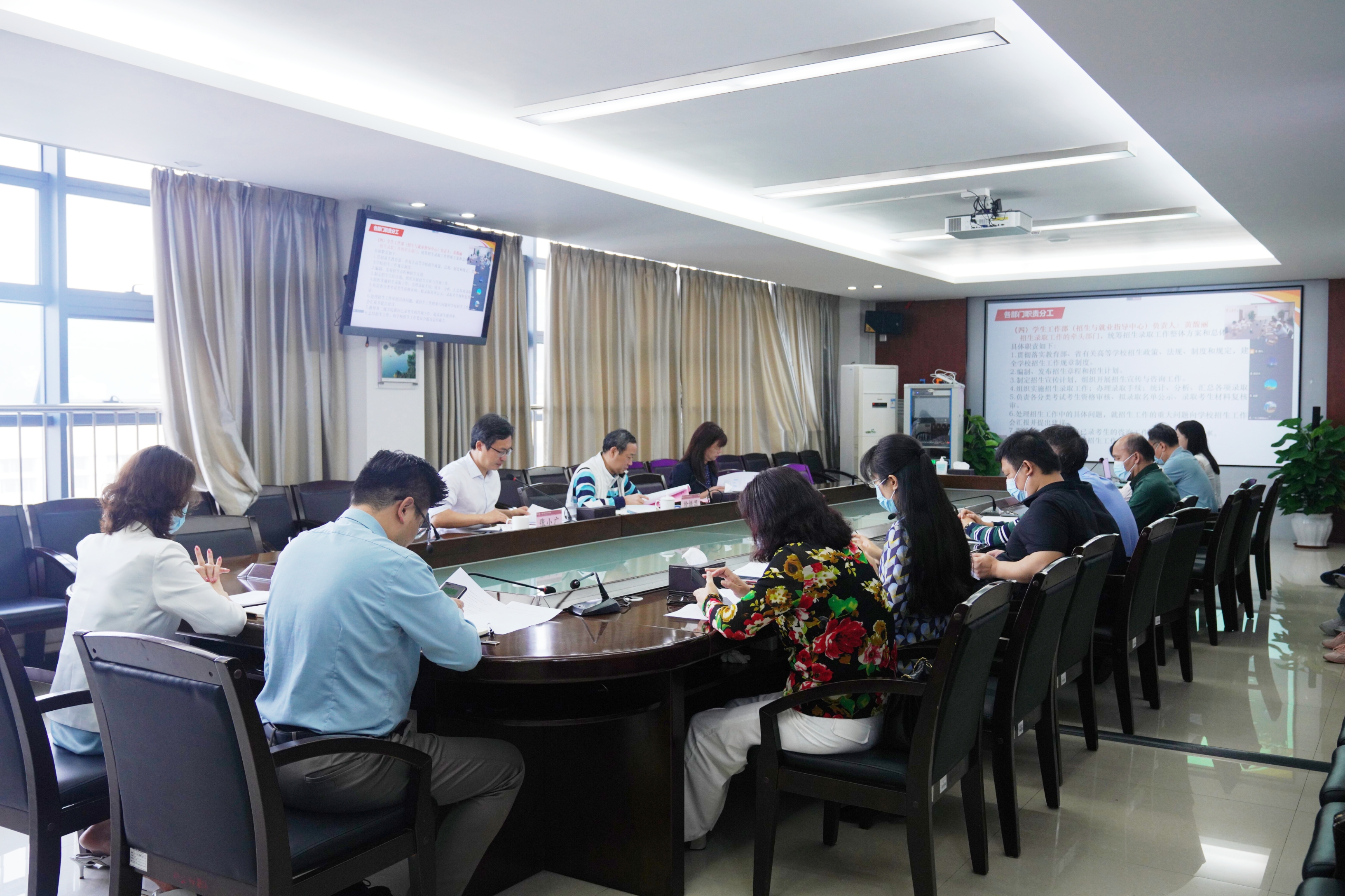 党政办公室、纪检室、宣传部(武装部)、学生工作部(招生与就业指导中心)、教务部、财务部、总务后勤部(保卫部)、现代教育技术中心、国际学院负责人,各二级学院党政负责人参加会议。