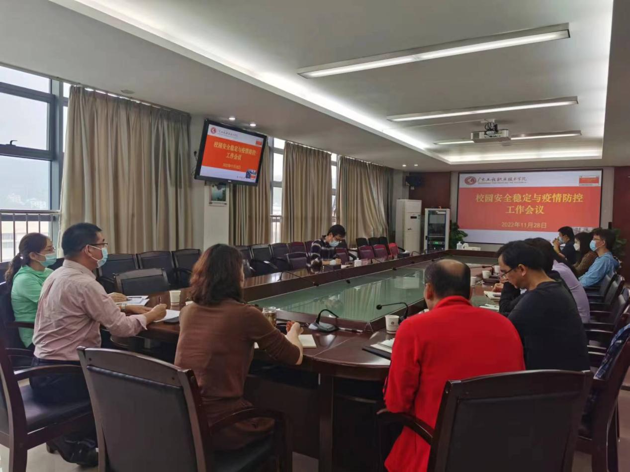 揭英荣副校长传达了全省教育系统安全稳定工作会议精神,并就做好学校安全稳定和疫情防控工作提出贯彻措施。张小广副校长介绍广州校区疫情防控情况,并布置校区下一步疫情防控工作。
