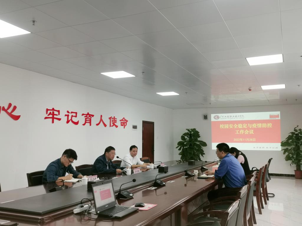 11月28日上午,学校召开校园安全稳定与疫情防控工作会议,学习传达贯彻落实全省教育系统安全稳定会议精神,部署安排近期学校安全稳定与疫情防控工作。全体校领导、各部门负责人、二级学院党总支书记、院长(负责人)参加会议。党委书记吴琦琳主持会议。