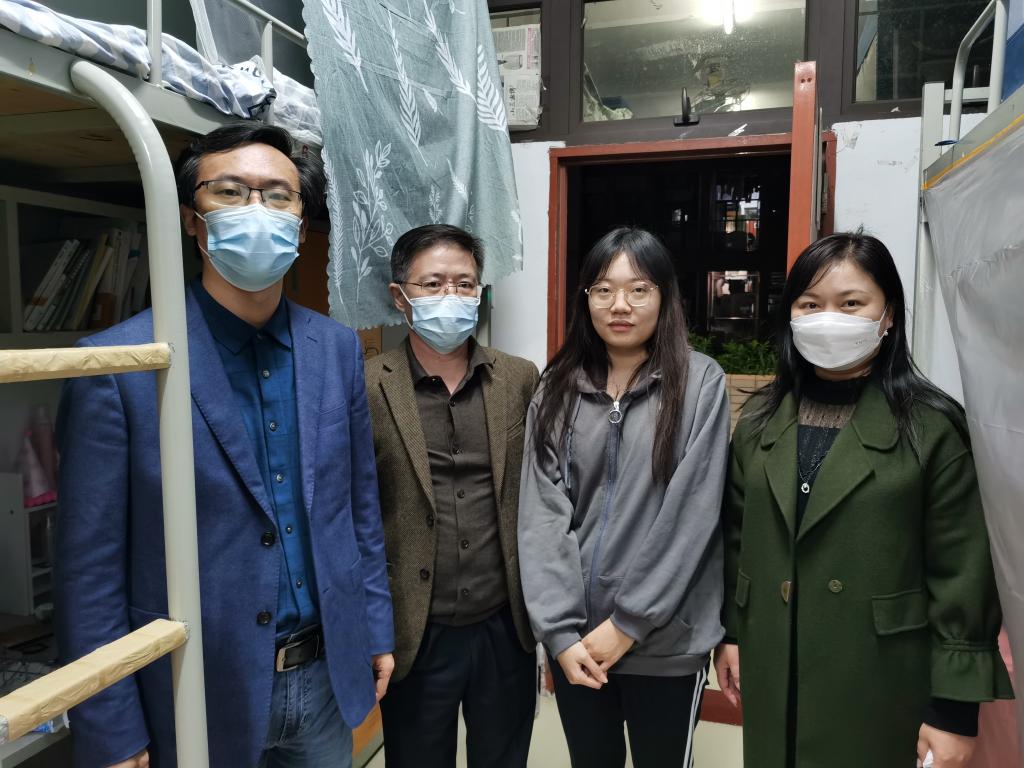 学校领导分别带队走访各学院的宿舍,了解学生疫情期间的学习、生活情况,亲切询问是否遇到困难,有何需要解决的难题。引导学生树立大局意识,积极配合国家疫情防控政策和学校防疫工作,做到理性应对,消除焦虑和不安,不造谣、不信谣、不传谣。告知学生,学校各部门为了全体师生的安全健康和日常生活,正全力以赴,全面做好服务保障工作。