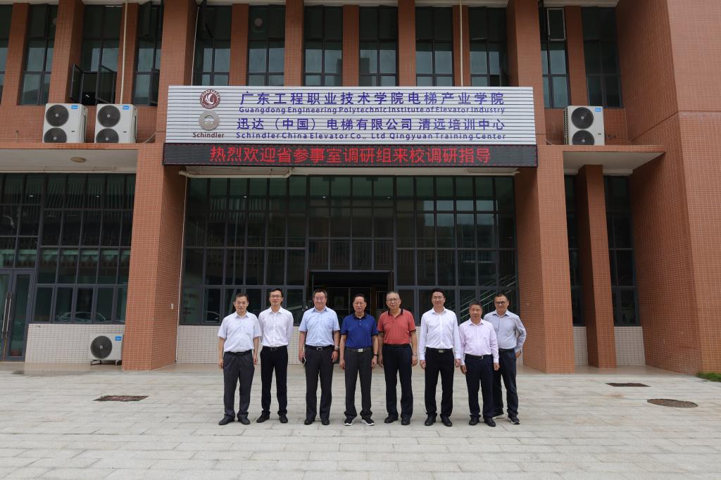 5月17日上午,省政府参事、省教育厅原厅长罗伟其教授,省政府参事、广东建设职业技术学院院长赵鹏飞教授,省政府参事、广东外语外贸大学原副校长顾也力教授,省政府参事、暨南大学副校长叶文才教授,省教育研究院副院长李海东,省政府参事室参事业务一处一级主任科员何湘云一行就“完善职业教育产教融合制度 促进广东高质量发展”主题深入我校调研。清远市副秘书长欧军、省职教城事务中心主任段习文、市教育局副局长贾圣广、学校党委委员、副校长张小广陪同调研。