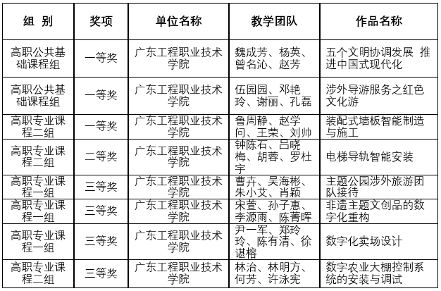 2023年广东省职业院校技能大赛教学能力比赛获奖名单