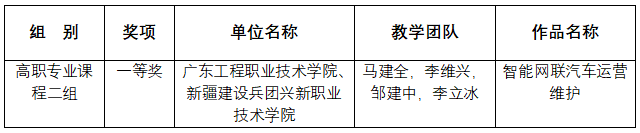 为加强与我校结对关系援助院校兵团兴新职业技术学院的专业交流,机电工程学院派出李维兴老师与兵团兴新职业技术学院以东西协作方式共同组队参赛,两校协作作品《智能网联汽车运营维护》以高职专业课程二组一等奖成绩进入国赛。