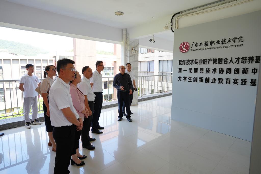 会后,在学校领导的陪同下,陈晓东一行实地考察了学校的录播室、电商直播实训室、云网融合虚拟仿真实训室等场地。
