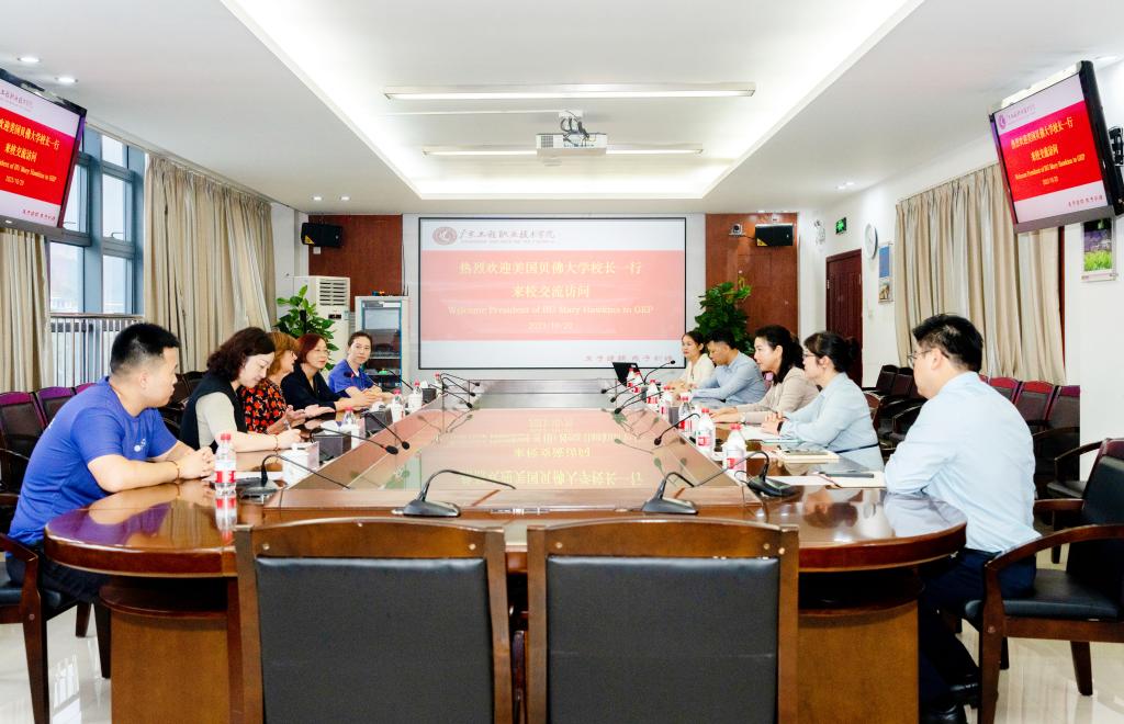 10月20日上午,贝佛大学校长玛丽·霍金斯(Mary Hawkins)、国际部主任朱莉·韦伯利(Julie Verebely)一行5人莅临我校访问。学校党委副书记、校长李丽会见来宾。座谈会在广州校区615举行,教务部部长陈淳慧、信息工程学院院长利业鞑、艺术设计学院党委书记张华、副院长施焦、国际教育学院副院长邱志远等参加座谈。