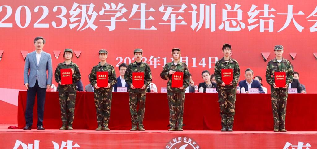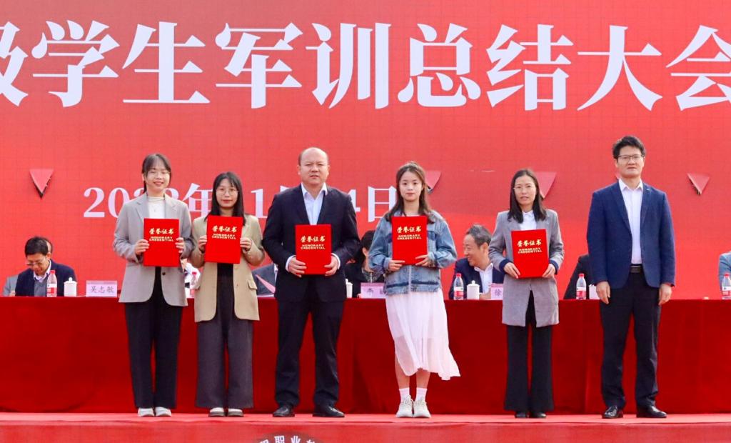 党委副书记徐振昌宣读了《关于表彰2023级学生军训优秀集体和个人的决定》。学校领导为军训获奖集体和个人颁奖。