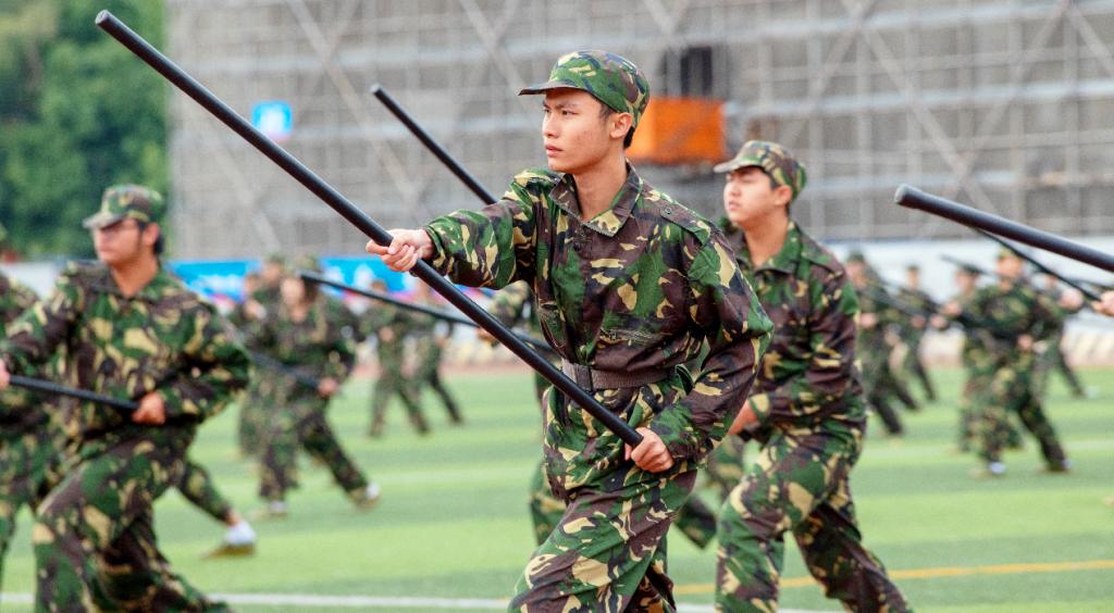 各方队通过操练表演展示训练成果。擒敌拳一令一动尽显刚劲有力,刺杀操一招一式皆是蓬勃朝气,应急棍术豪情冲霄,会操“战”味十足。