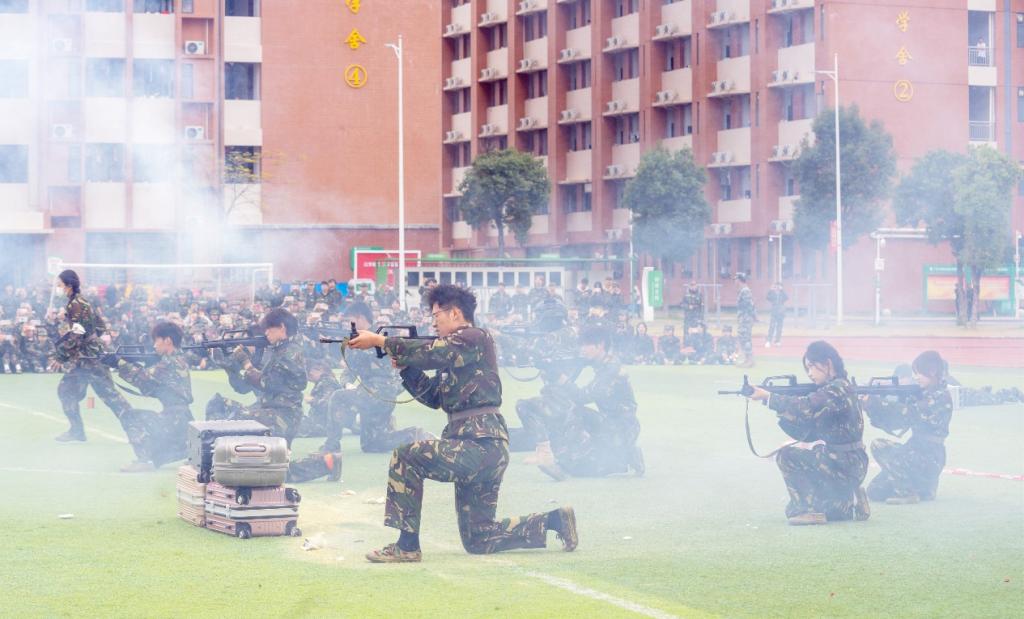 学校领导,学校军训工作领导小组成员单位党政办公室、武装部、学工部、教务部、总务后勤部、团委负责人,二级学院党委书记、副书记、新生辅导员,2023级全体学生,承训部队领导和教官参加了总结大会。总结大会由学校党委副书记方燕主持。