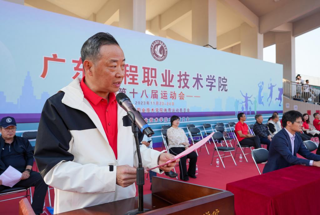 我校第十八届校运会于11月17日和11月23日分别在广州和清远两个校区拉开帷幕。开、闭幕式在清远校区新田径场隆重举行,学校领导、中层干部以及二级学院教师和学生代表出席开、闭幕式,大会由吴志敏副校长主持,学校党委副书记、纪委书记徐振昌同志致开、闭幕词,校长李丽同志宣布广东工程职业技术学院第十八届运动会开幕。