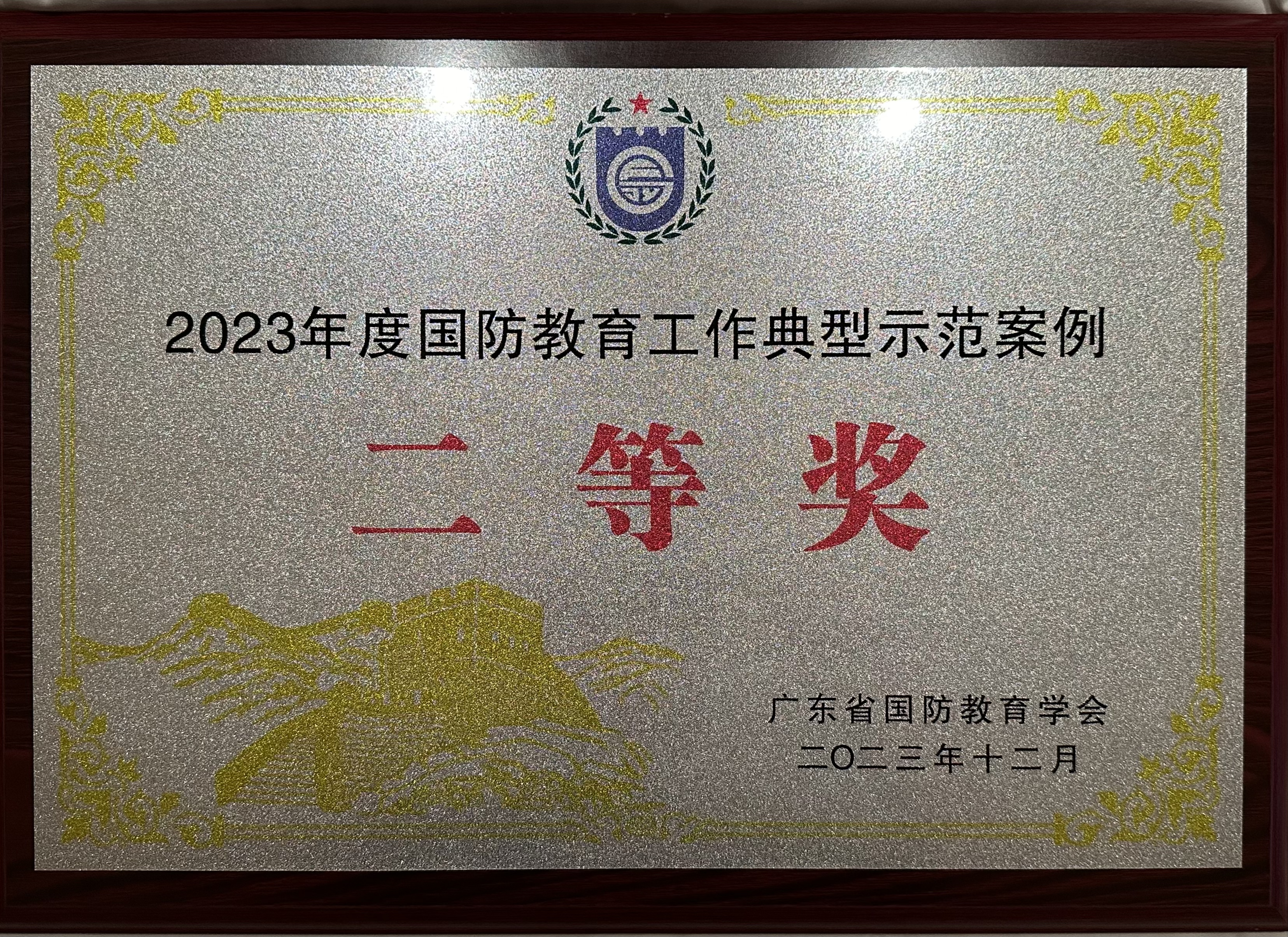 近日,广东省国防教育学会主办的2023年度工作会议在河源召开。会议对2023年度广东省国防教育工作中的先进单位和国防教育工作典型示范案例表彰。我校荣获“2023年度国防教育工作典型示范案例二等奖”,学校武装部被授予“广东省国防教育工作先进集体”。