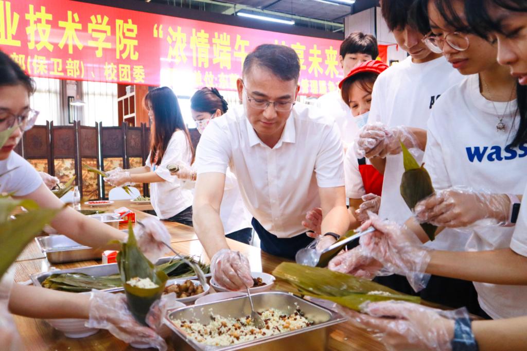 为弘扬传统文化、践行传统美德,让同学们感受端午节深厚的文化内涵,6月10日端午节当天,学校两校区同步开展“浓情端午,粽享未来”端午主题活动。学校党委书记叶忠明,党委副书记、校长李丽,党委委员、副校长揭英荣,两校区值班干部和留校学生一同参与活动,共度端午佳节。