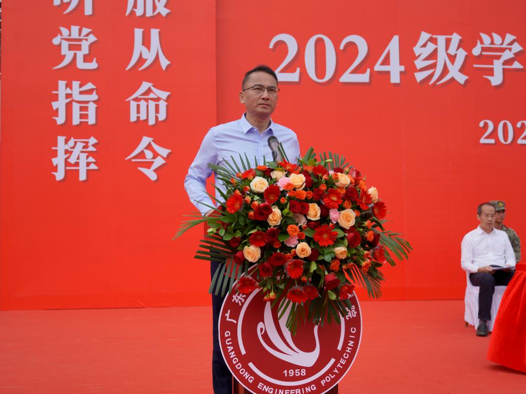 学校党委书记叶忠明充分肯定本次军训的成果,回顾军训历程,为2024级新生提出殷切希望与嘱托,希望同学们巩固好军训成果,以崭新姿态投入大学新生活。他勉励同学们要不断强化国防意识,传承红色基因,补足精神之钙,坚定理想信念,擦亮青春底色;要坚持勤学苦干、多思善悟,用知识武装头脑,增强本领才干,激荡青春力量;要谨记“工于建构、成于创造”校训精神,永葆初心,勇担使命,争先创优,主动作为,锤炼坚强品质,奏响青春赞歌。