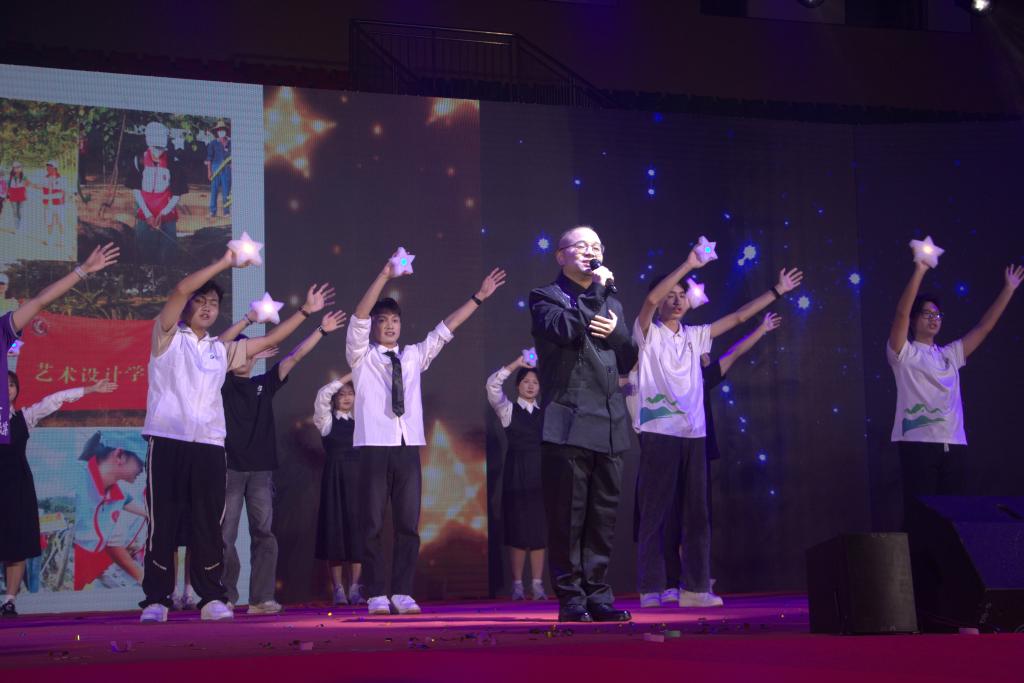 在“向未来”篇章中,国风街舞《山河图》将传统与现代巧妙结合,展现了青年的创新精神和爱国情怀。温暖歌曲《凡星》以学校师生积极响应省委、省政府“百千万工程”的相关部署,奔赴乡村一线为祖国做贡献的情景为背景。歌舞剧《洗衣歌》则通过艺术表演的形式,展现了军民共建的温暖情怀。歌舞表演《德诚才精强国有我》和大合唱《百年恰是风华正茂》将晚会推向了高潮。晚会最后在全场师生共同挥舞国旗、千人齐唱《歌唱祖国》的嘹亮歌声中圆满落幕。