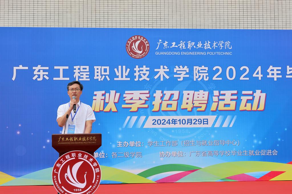 为助力学生高质量就业,抢抓25届毕业班学生实习前开始找工作的关键时机,10月29、30日,广东工程职业技术学院在广州、清远两校区举办2024年毕业生秋季招聘活动,共邀请270多家用人单位携1.5万余个岗位参加现场招聘,其中有44家校友企业。举办了47场优质企业专场宣讲会,2025届毕业生踊跃参加面试,当场达成了初步对接意向数超过1500个。学校党委书记叶忠明,党委副书记、校长李丽,党委副书记、纪委书记徐振昌,党委委员、副校长张小广等校领导到现场与企业深入交流,了解企业岗位需求,推进校企合作、产教融合。