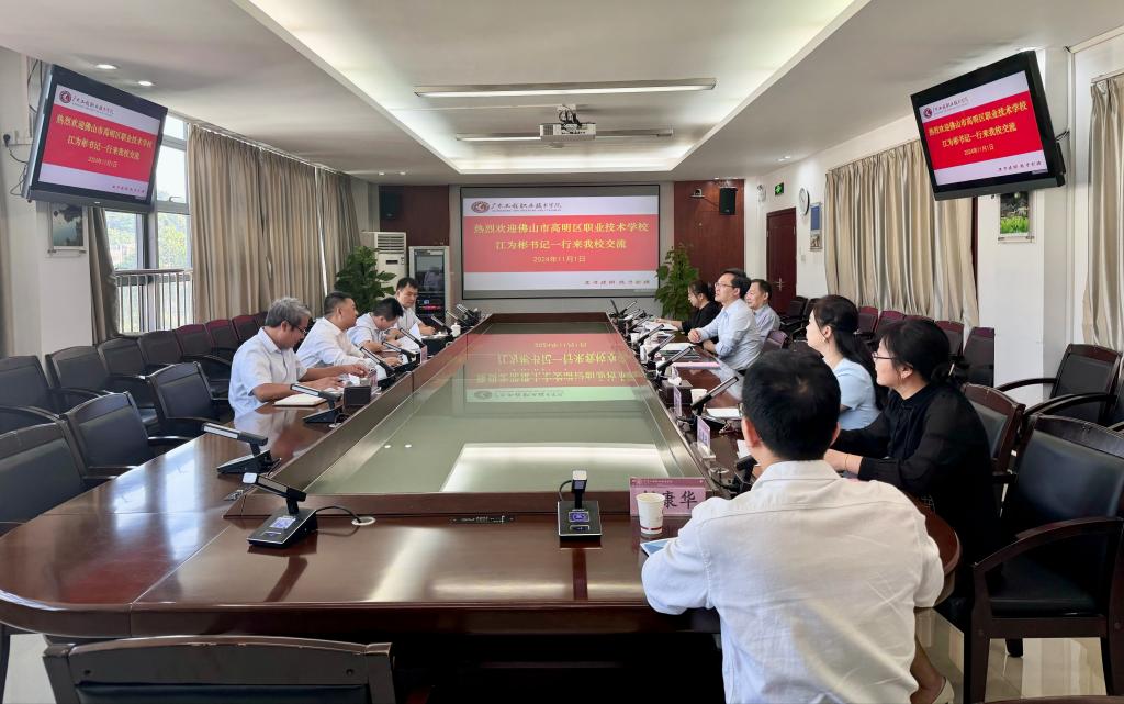 江为彬书记介绍了佛山市高明区职业技术学校基本概况,并就双方合作的中高职贯通三二分段专业的课程建设、教学等方面进行了互动交流,希望能共同推进两校中高职贯通三二分段高质量发展。