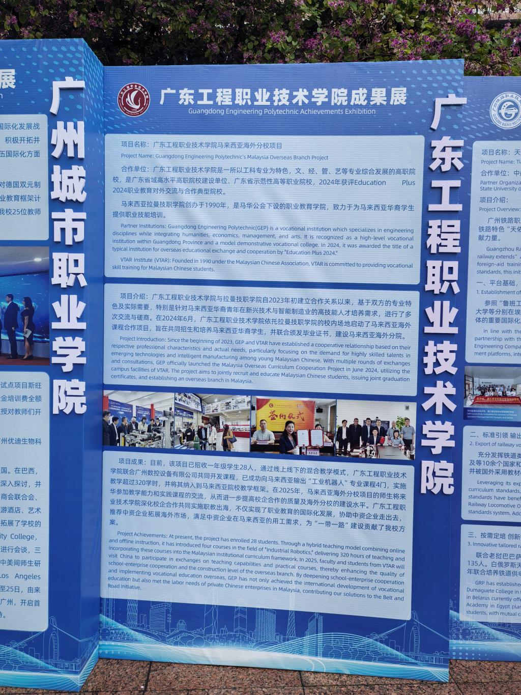在过去一年里,学校输出职业标准、建设马来西亚海外分校、共建合作办学项目等国际交流与合作的成果入选联盟年度工作报告,相关案例在年度活动现场成果展展出。