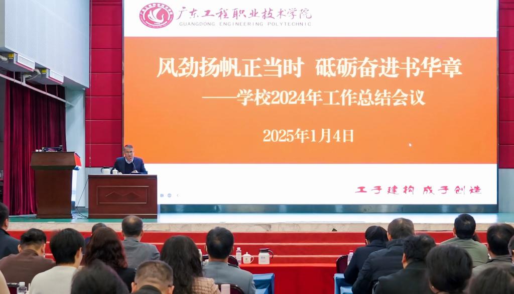 叶忠明充分肯定了学校过去一年取得的成绩。他指出,2024年学校深入学习贯彻落实党的二十届三中全会精神,全面深化改革,强化内涵建设,推动专业(群)和二级学院优化整合,中层干部换届和人事分配制度改革三大任务,以改革激发奋进伟力,学校各方面工作取得良好成效。