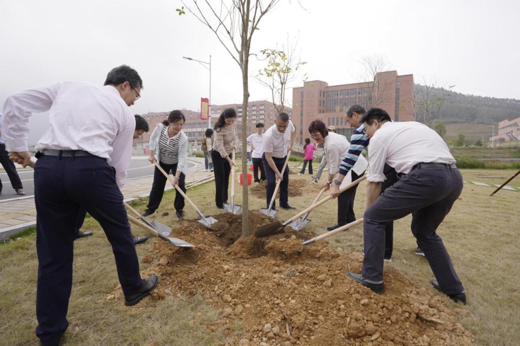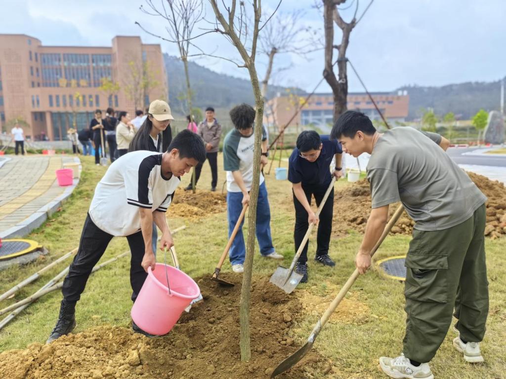 为深入贯彻习近平生态文明思想,牢固树立和践行绿水青山就是金山银山的理念,深入推进绿美校园生态建设,发挥植树节育人功能,3月14日,学校举办“植绿护绿,劳动筑梦”植树活动,全体校领导、来访的马来西亚拉曼技职学院首席执行官陈清凉(TAN CHENG LIANG)、部分中层干部与学生代表参加活动。
