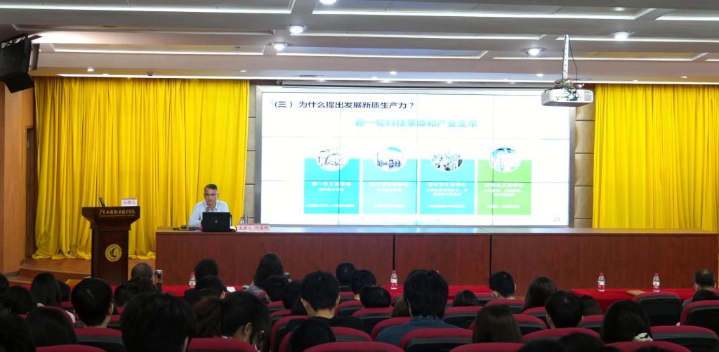 叶忠明书记从国民经济和社会发展统计公报切入,阐明了新质生产力对于推动我国经济持续稳定发展的深远意义。以广东高质量发展为线索,围绕“为什么要提出发展新质生产力、如何加快发展新质生产力”两个问题展开讲授。