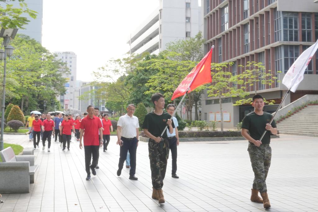一路上,教职工们并肩前行,一边欣赏校园内春日的迷人美景,嫩绿枝叶随风摇曳,娇艳花朵竞相绽放;一边分享工作中的趣事、教学创新思路,以及生活里的温馨片段。欢声笑语回荡在校园每个角落,大家按照原定路线有序打卡,在运动中放松身心,在交流中增进情谊。