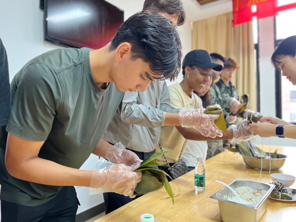 活动尾声,学校领导与学子们共同拿起刚包好的粽子,祝福大家端午安康,勉励同学们作为新时代大学生,要当好文化传承者,更要做创新发展的生力军。粽香与文化温度在校园交织,共绘文明交流画卷。这场跨越国界的端午之约,让中华文化在青春对话中焕发新生。