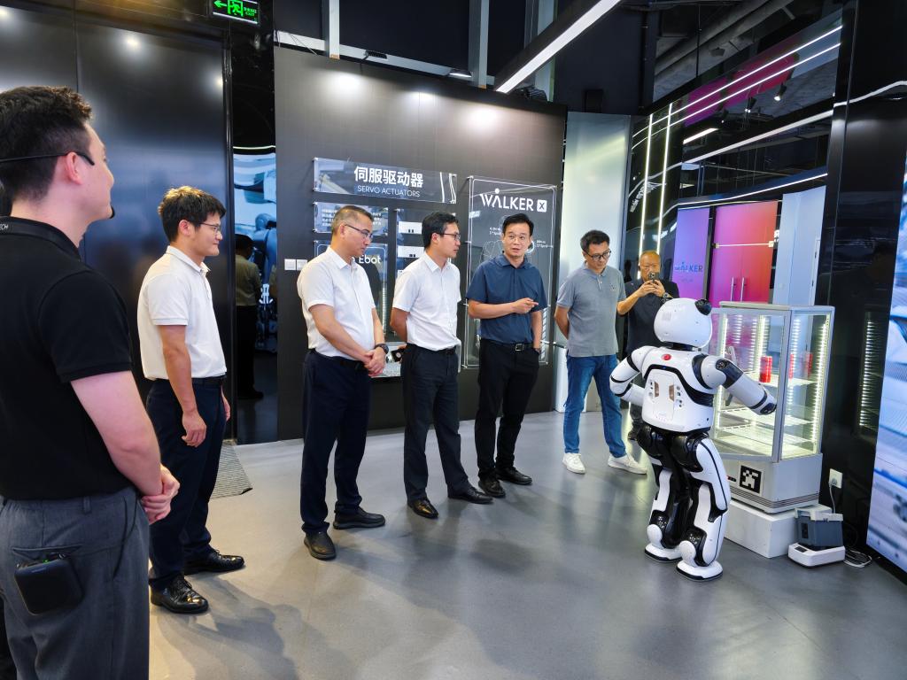 优必选科技高级副总裁钟永及优必选科技校企合作部相关团队接待了叶忠明书记一行。叶书记一行在钟永副总裁陪同下首先参观了优必选科技展厅,亲身体验了优必选自主研发的人形机器人优悠、工业人形机器人Walker S在家庭陪伴、工业制造、商用服务等方面的精彩互动,深入了解优必选作为全球极少数具备人形机器人全栈式技术能力的公司在机器人与人工智能融合技术等方面的强大技术实力与成果。
