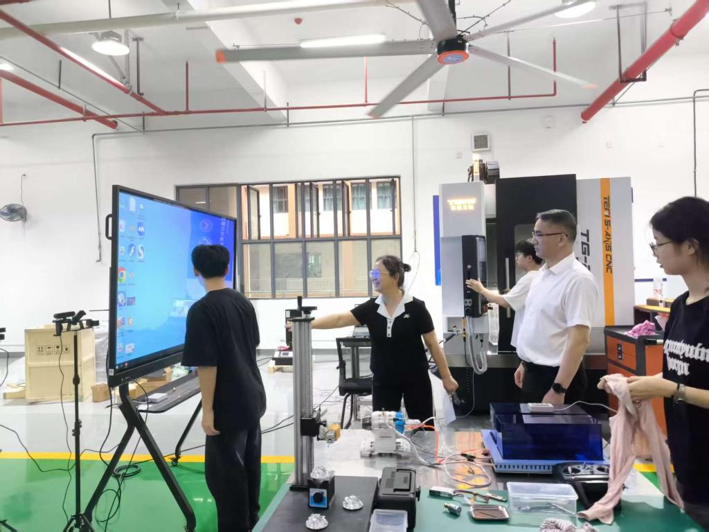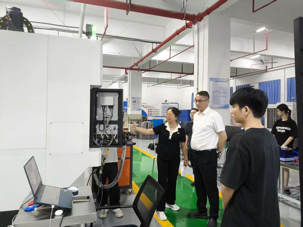 在先进制造实训中心,叶忠明书记实地察看了先进制造赛项备赛现场,详细询问训练进度、设备保障及生活安排等细节,并与指导老师、参赛学生亲切交谈。他对师生们假期坚持高强度训练的拼搏劲头给予高度肯定,对老师们牺牲假期坚守岗位表示诚挚感谢,反复叮嘱大家注意劳逸结合,保持最佳竞技状态。