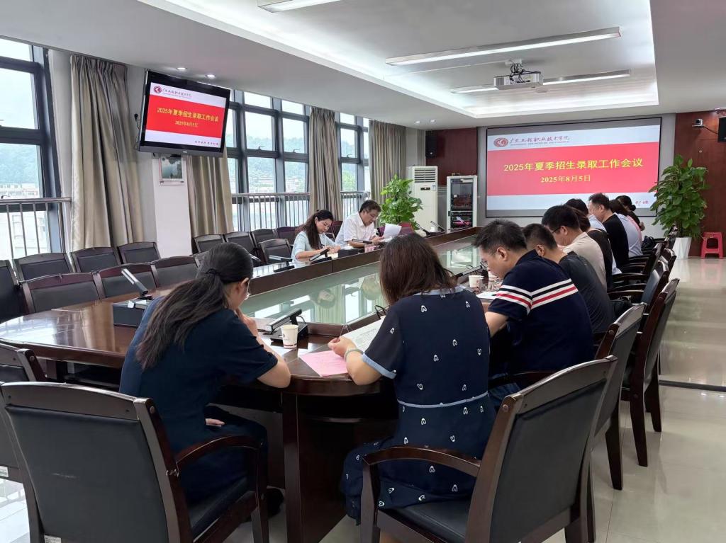 2025年8月5日上午,我校2025年夏季招生录取工作会议在办公楼615会议室召开,校长李丽、副校长张永强、学生工作部(招生与就业指导中心)负责人、各二级学院院长、纪检室相关工作人员参加会议。会议由副校长张永强主持。