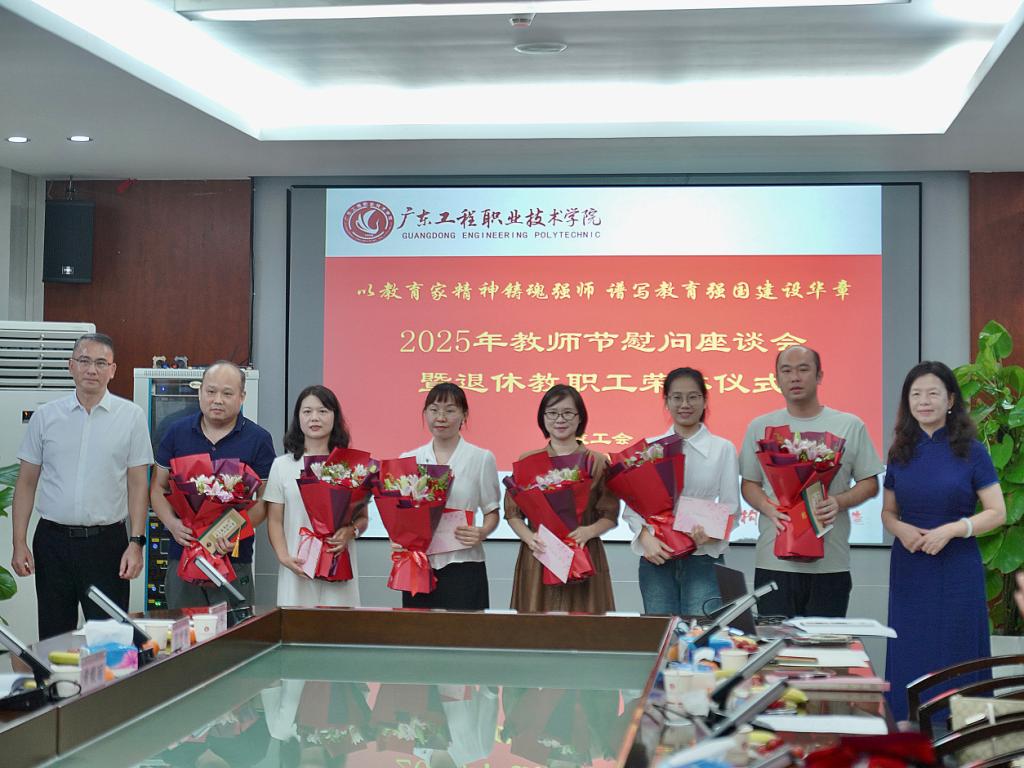 在第41个教师节即将到来之际,9月8日上午,学校工会在广州校区办公楼615会议室举办“以教育家精神铸魂强师,谱写教育强国建设华章”为主题的教师节慰问座谈会暨退休教职工荣休仪式。学校党委书记叶忠明、工会委员、荣休教职工代表、受慰问教师及相关部门负责人欢聚一堂,致敬奉献、畅谈未来。活动由校工会主席方燕主持。