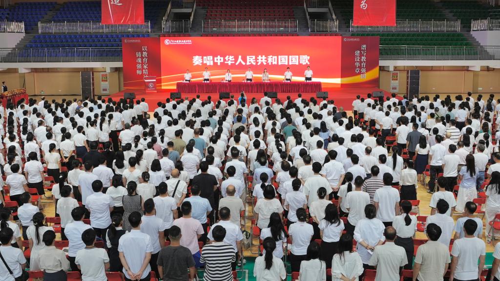 岭南秋日,金风送爽。秋菊溢彩,桃李芬芳。9月10日,学校在省职教城校区体育馆举行2025年教师节庆祝表彰大会暨师德建设主题教育月活动启动仪式,庆祝第41个教师节。
