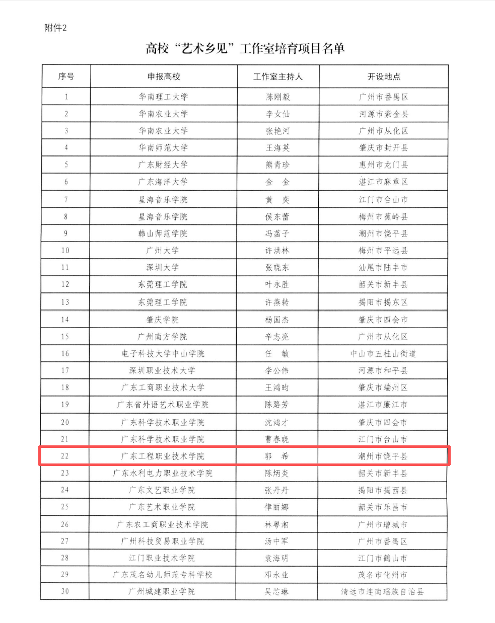 近日,广东省“百千万工程”指挥部“双百行动”专班办公室、广东省精神文明建设办公室及广东省文化和旅游厅等3个单位联合发文,由艺术设计学院院长郭希主持的省级项目“艺术乡见”工作室成功入选广东省2025年高校“艺术乡见”工作室培育项目名单,将与潮州市饶平县携手共建该工作室。
