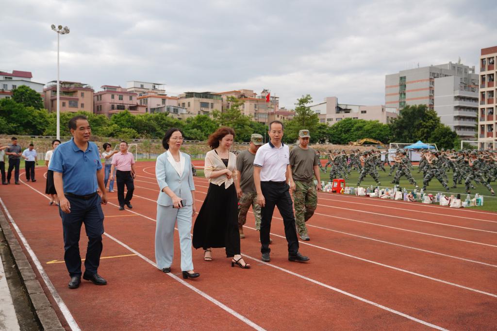 在广州校区训练场,陈冬梅副书记看望军训的新生,对刻苦训练的学生表示肯定,鼓励大家要听从教官安排,服从组织纪律,刻苦训练,厚植爱国情怀。