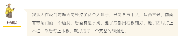 等最后把鸦片烟全部销毁后,打开闸门,趁着海水退潮,把泥浆般的水一下子带入大海。等水彻底放完之后,再把水池子清洗一遍,等待下一轮的销烟。两个销烟池可以轮流不停地工作。
