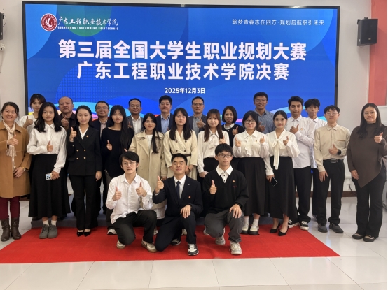 12月3日下午,广东工程职业技术学院第三届全国大学生职业规划大赛校赛决赛在大学生创新创业孵化基地路演展示厅顺利举办。比赛由创新创业学院和学生工作部(招生与就业指导中心)共同主办,由广东工程职业技术学院就业创业e站、各二级学院承办。我校创新创业学院院长黎惠生、广州壹旋科技有限公司总经理谭满旋、广州雇品科技文化传媒有限公司项目总监罗夏希,学校学生工作部(招生与就业指导中心)、科学技术部、创新创业学院等职能部门领导和相关工作人员以及参赛选手指导老师和学生代表等出席了比赛活动。自本次大赛启动以来,学校广泛动员、精心组织,吸引了各学院学生积极参与。赛事分为成长赛道与就业赛道两大赛道,经过初赛广泛筛选和复赛严格评审,最终共有16名兼具规划视野与实践思考的优秀选手晋级决赛。他们在决赛中展现出清晰的职业思考和务实的成长路径。
