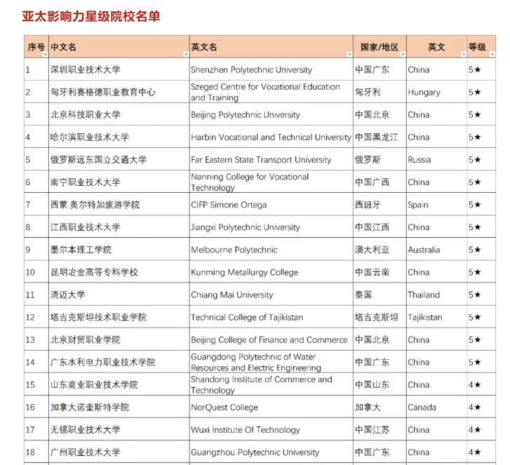 此次入选“2025亚太职业院校影响力星级院校”,既是对学校国际化建设成果的高度认可,更标志着学校国际影响力与核心竞争力实现稳步跃升。未来,学校将持续深化国际化战略布局与交流合作,以合作办学、跨境交流、国际学生培养为核心抓手,不断完善开放包容的职业教育生态,为服务职业教育国际化高质量发展、构建高水平对外开放的职业教育体系注入更多动能。