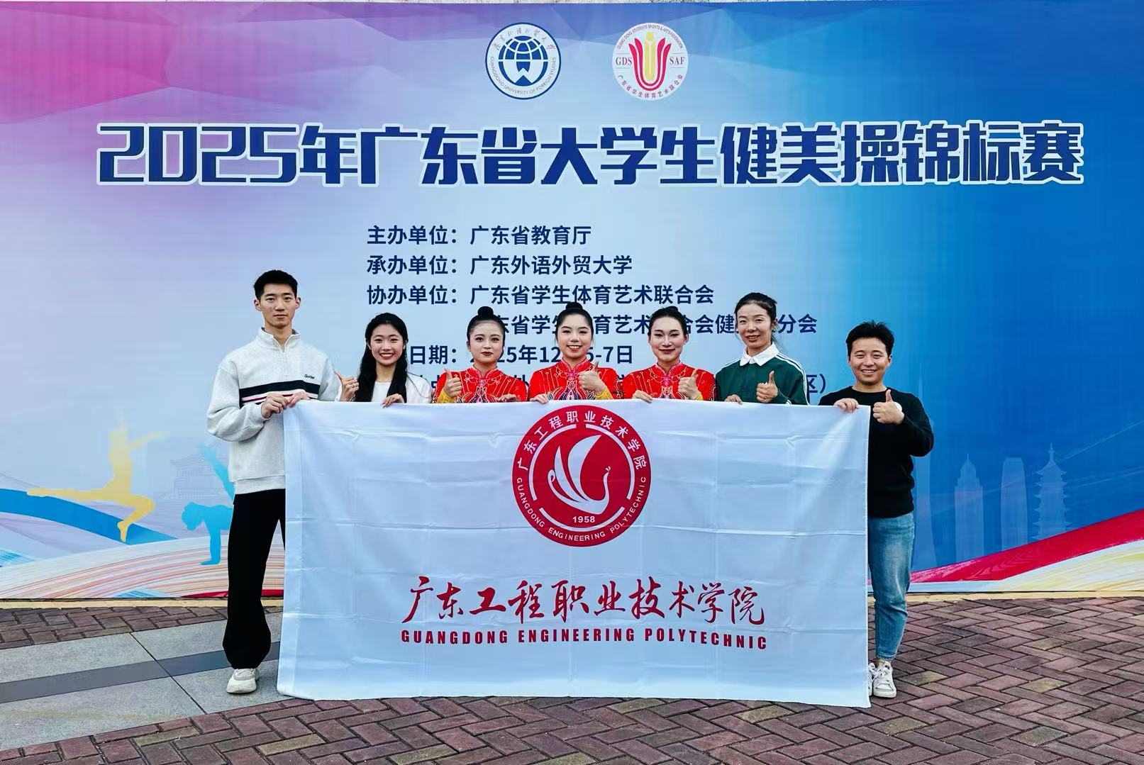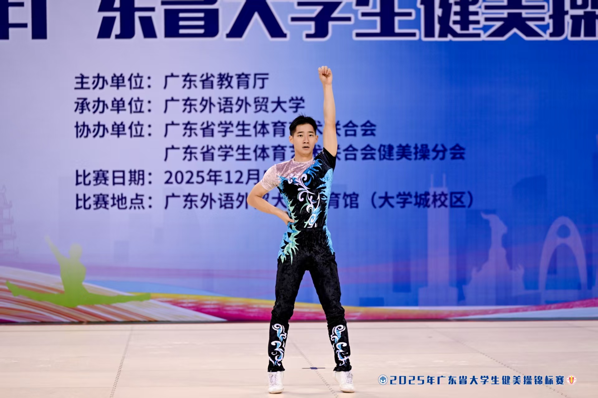 12月5日至7日,由广东省教育厅指导、广东省学生体育艺术联合会主办的2025年广东省大学生健美操锦标赛,在广东外语外贸大学大学城校区体育馆顺利举行,共有省内高校52支代表队754名选手参加角逐。此次赛事,我校派出5名学子出征,由周琳院长带队,张菊香、郭晓静两位老师担任指导教练。赛场上,队员们身着统一赛服,以饱满的热情、昂扬的姿态投入每一项比拼,我校学子不负众望,在仅有5名队员参加比赛的情况下一举拿下丙组团体总分第五名的成绩,还获得两个项目第三名及三个项目第四名的成绩,用实力在赛场上绽放青春光彩!