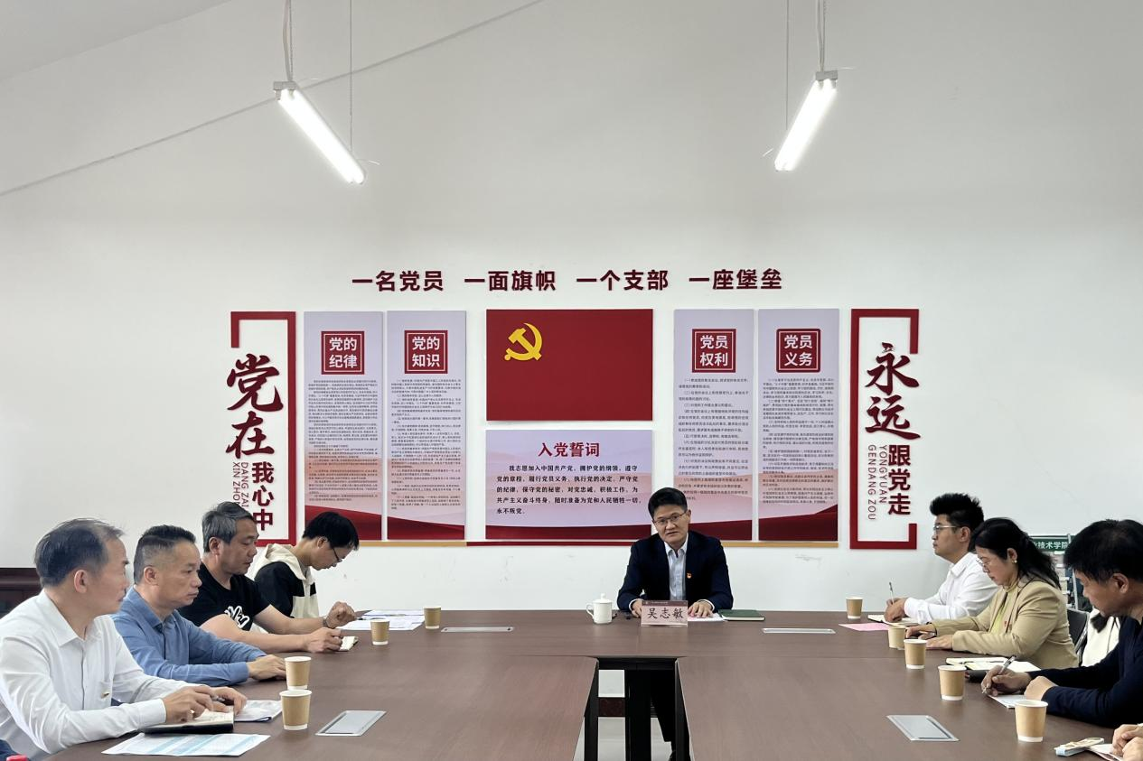 12月9日下午,学校党委委员、副校长吴志敏为科学技术部党支部、教学质量与监测中心党支部、体育健康学院教师第二党支部全体党员讲授党的二十届四中全会精神专题党课。会议首先落实“第一议题”制度,由主持人科学技术部党支部书记莫康信领学习近平总书记在广东考察时的重要讲话精神。随后,吴志敏副校长回顾了党的历届四中全会的发展历程,梳理了“十四五”时期我国经济社会发展取得的历史性成就,重点阐释了《中共中央关于制定国民经济和社会发展第十五个五年规划的建议》的指导思想、重大原则、主要目标和战略任务。在结合学校办学实际与发展使命的前提下,他指出,学校的职业教育必须深度融入广东省的发展大势与现代化产业体系建设。面对产业转型趋势,学校必须动态优化专业设置,深化产教融合,通过校企共建、定制化培养等路径实现教育与产业的精准对接。在人工智能快速发展的时代,教育者更应着眼于培养学生的创新思维、批判性思维等核心能力,要提升战略眼光,明确发展方向,将个人发展融入学校“十五五”规划蓝图,积极投身于省域“双高校”建设与“建高升本”核心目标。