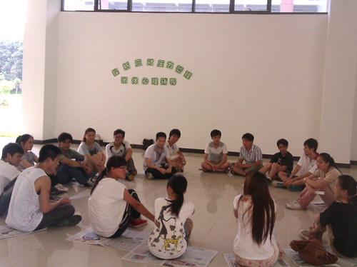 针对西校区大一学生的恋爱现象,心理培训师骆思钊老师在西校区主持"爱,是产生爱的能力"为主题的心理团体辅导。