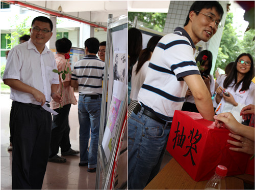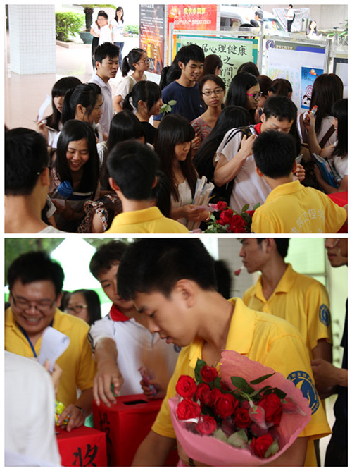 "赠人玫瑰、手有余香",工作人员为投票的师生赠送玫瑰,将幸福传递给每一位师生,将我们"阳光建筑、阳光心理"的工作理念传递出去,促进学生的健康成长,共同建设幸福校园。