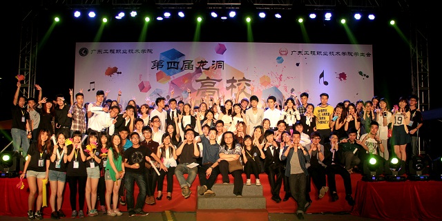 为打造校园精品文化,提升大学生综合素质,加强校际交流与学习,共同迎接即将到来的五四青年节。4月25日晚,由我院学生会主办的"心手相连 校联相牵"2014年龙洞高校联谊晚会在学院创业广场魅丽上演。本次晚会由我院协同广东金融学院、广东食品药品职业学院、广东岭南职业技术学院、广东交通职业技术学院、中山大学新华学院等八所兄弟院校联袂出演,为观众献上了舞蹈、魔术、歌唱、小品、模特走秀等13个精彩节目。活动当晚,院团委黄馥丽书记、陈雪靖、黄琼跃等团委老师、院办公室郑皓丹老师、各团总支书记、学生会指导老师以及来自八所兄弟高校的学生代表与我校师生一同观看了演出。