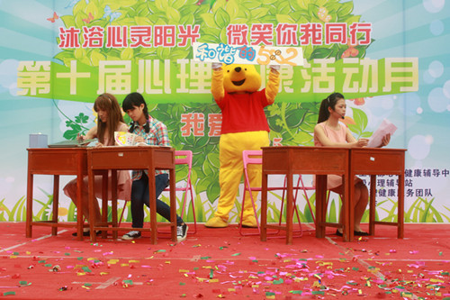 本次心理健康活动月以"沐浴心灵阳光,微笑你我同行"为活动主题,时间从5月12日持续至6月12日。活动月期间,心理健康辅导中以团体心理辅导,专题知识讲座为特色开展心理知识宣传,各二级心理辅导站承办各具特色的团体心理活动,期望在校学生在丰富多彩的心理节目中培养健康心态,传递积极情绪,学习陪伴和交往。预祝本次活动月举得圆满成功。