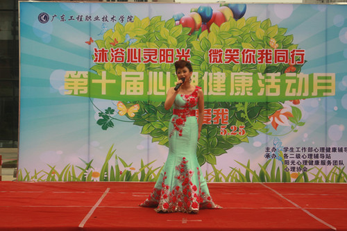 文艺汇演环节,人文艺术学院周曼妮老师为大家献唱歌曲《爱在天地间》,获得掌声阵阵。心理协会也将自己的特色手语操《让爱传出去》和校园心理情景剧《棱角》在开幕式上进行汇报演出,舞狮协会、书法协会、器乐协会、校啦啦操队也参加了文艺汇演。