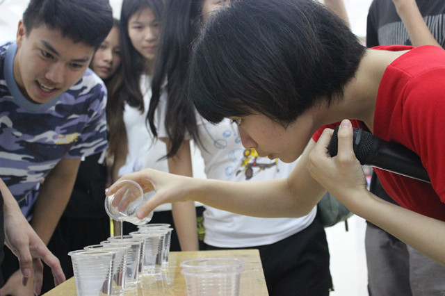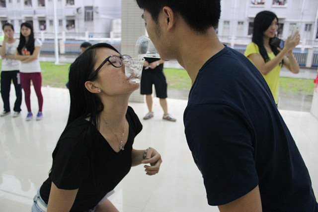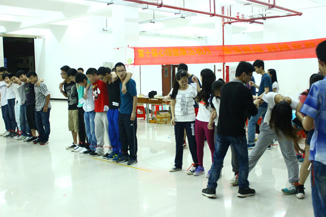 活动当天,虽然阴雨连绵,却丝毫没有影响到同学们的热情,他们积极参加活动。此次运动会面向全校2013级学生,共有9支队伍参赛,以四个心理游戏的形式进行。其中"六人七足"比赛中,每组队员肩并肩,信心十足,蓄势待发,现场气氛高涨;在"抢凳子"、"吹走烦恼"的游戏中,队员们之间齐心协力,相互加油打气;在水杯倒水游戏中同学们更是团结一心,谨慎地完成每一个传递动作。场面气氛热烈,运动会取得了圆满成功。