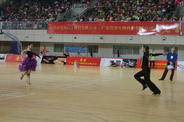 "莞香杯"首届广东省高校体育舞蹈锦标赛暨广东省中小学生体育舞蹈公开赛6月7日在广州大学城广州大学体育馆隆重开赛,来自广东全省67支代表队2000多名选手们在赛场上一展舞技和激情。体育舞蹈舞姿妩媚薄酒、热情奔放、节奏感强,是一项将舞蹈艺术和体育运动完美融合于一身的艺术形式,兼具了文化娱乐和体育竞技的双重内涵。本次比赛不但项目多,参与者多,普及和提高相结合,吸收多元文化精华,竞争程度空前激烈。首次参加体育舞蹈比赛的我院悦舞啦啦队队员刘婉婷、林研两位同学,参加了大专院校女子双人单项恰恰组和教师单项恰恰组,经过激烈的角逐,最终在两个组别中都赢得了第一名!这是我院体育舞蹈的发展路上一个新的里程碑!