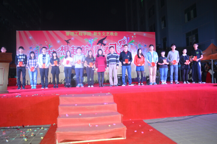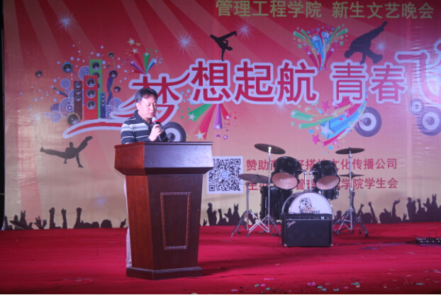 2014年11月20日晚19:00,管理工程学院以"梦想起航,青春飞扬"为主题的新生文艺晚会在我校办公楼广场拉开序幕。莅临本次晚会的领导老师分别有管理工程学院于雁翎院长,管理工程学院党总支刘迎春书记、张永强副书记,学工部陈少锋科长,以及前来观摩的各院辅导员和老师嘉宾。