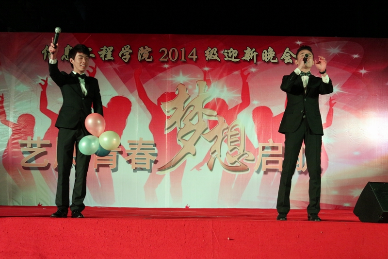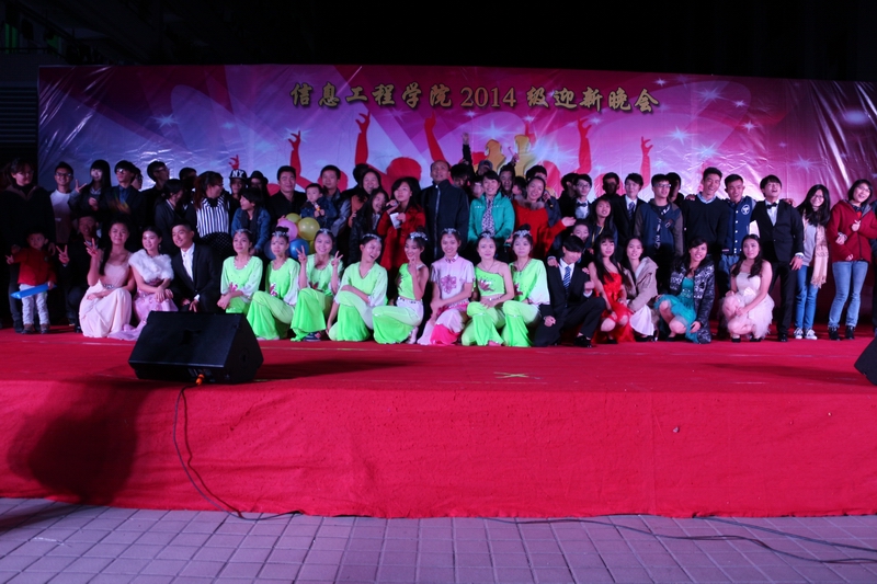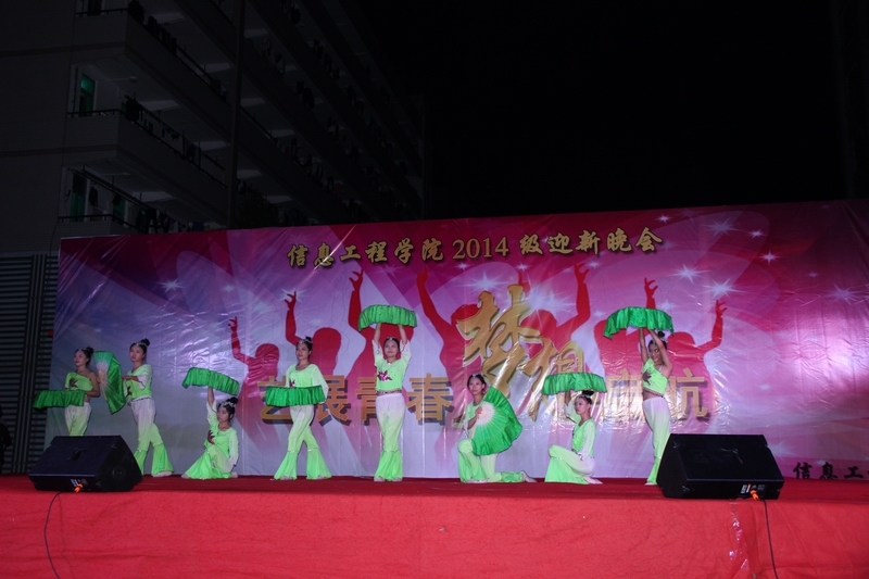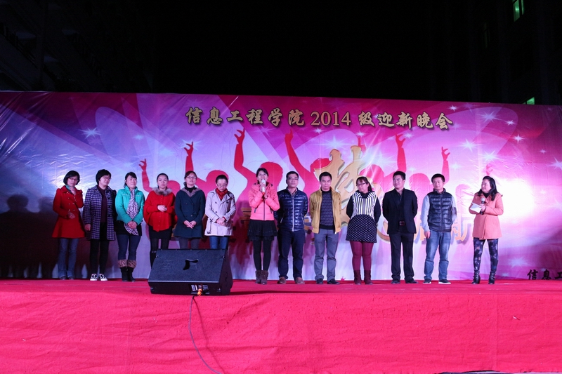 2014年12月4日晚19:00,信息工程学院"艺展青春,梦想起航"2014级迎新晚会在学校办公楼前广场隆重举行,莅临本次晚会的领导和嘉宾有信息工程学院利业鞑院长,党总支刘松梅书记、肖贵灯副书记,管理工程学院王江丽老师,金融投资学院卢宇帅老师,信息工程学院全体辅导员,2014级全体班主任,以及各兄弟学院团总支、学生会代表齐集一堂,共同观看了一场丰富的视听盛宴。