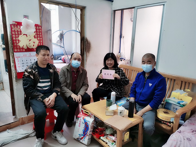 2022年1月6日上午,工会专职干部及管理工程学院分工会委员在放假前夕,代表学校走访慰问身患重病的黎霞老师。