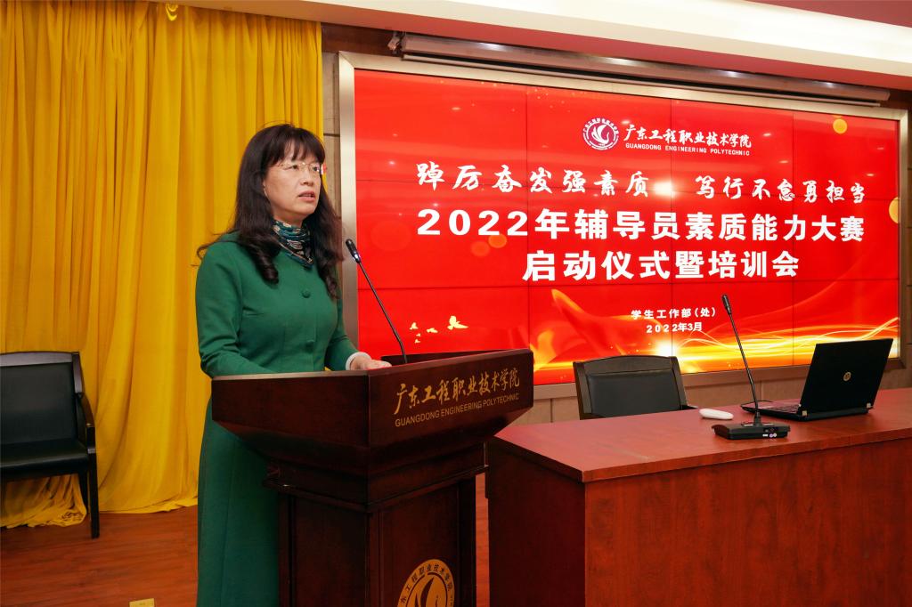 3月3日下午,辅导员素质能力大赛启动仪式暨培训会在广州校区图书馆报告厅举行,特邀广州科技职业技术大学党委书记、华南理工大学硕士研究生导师冯小宁作专题培训。学校党委副书记方燕出席并动员讲话,各学院党总支书记、副书记,全体辅导员,学生工作部全体成员参加会议,会议由学生工作部部长黄馥丽主持。