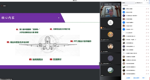 2022年4月23日上午9:30,创业学院联合信息工程学院以腾讯会议结合腾讯课堂的方式,共同举办了一次“互联网+”大学生创新创业大赛培训辅导讲座。讲座邀请了创新创业大赛专家评委、广东北研园区运营管理有限公司法人董事长张宝华为全校师生进行大赛培训辅导。创业学院黎惠生院长、何杰文副院长,信息工程学院利业鞑院长、党总支桂爱民书记、艾华武副书记,以及本次参赛的团队指导老师和成员参与了讲座。